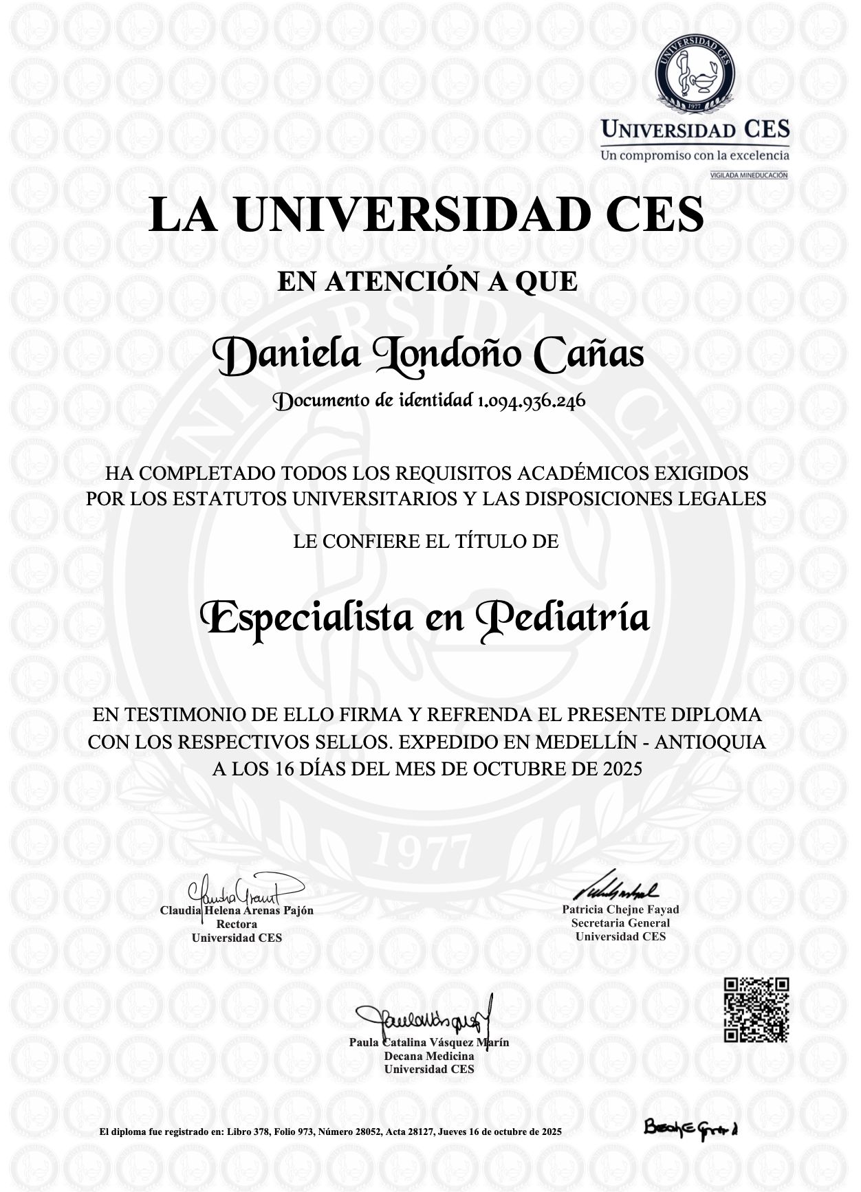 Soy médica especialista en pediatría formada para brindar a mis pacientes y sus acudientes atención humanizada y de la más alta calidad. Disfruto al transmitir conocimientos actualizados a las nuevas generaciones. Soy una profesional comprometida, dispuesta a ayudar en lo que los pacientes y mis colegas necesiten.